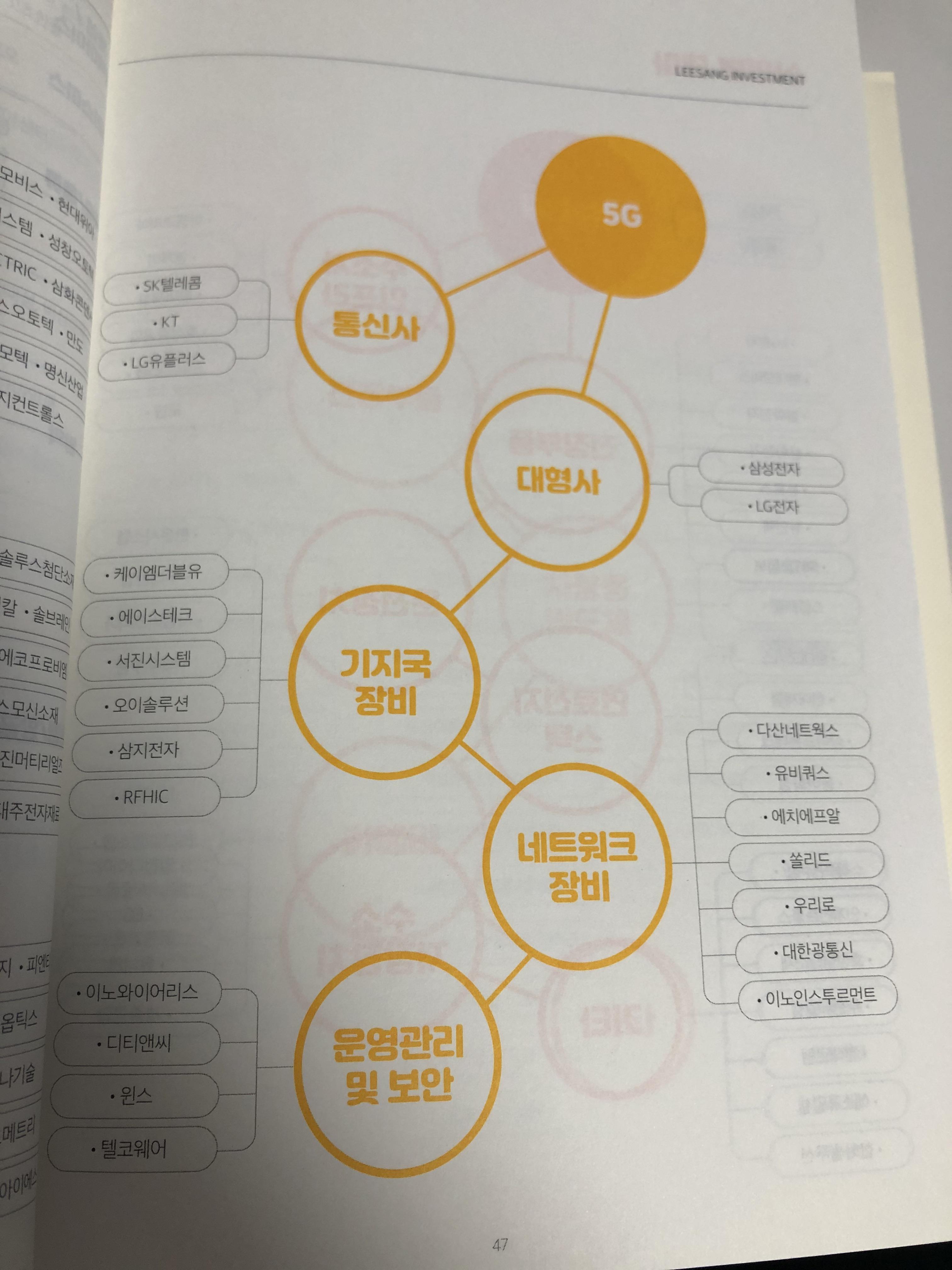 5G가 한때 뜨거웠었는데 관련주들을 정리해주고 있다.