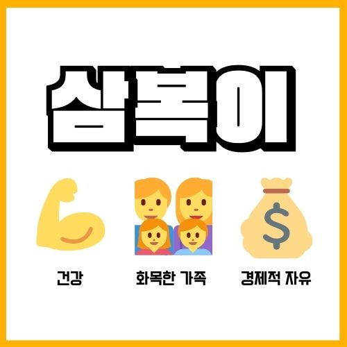 이상으로 건강, 화목한 가족, 경제적 자유라는 세 가지 복을 다 가지기 위해 열심히 재테크하는 직장인 삼복이었습니다.